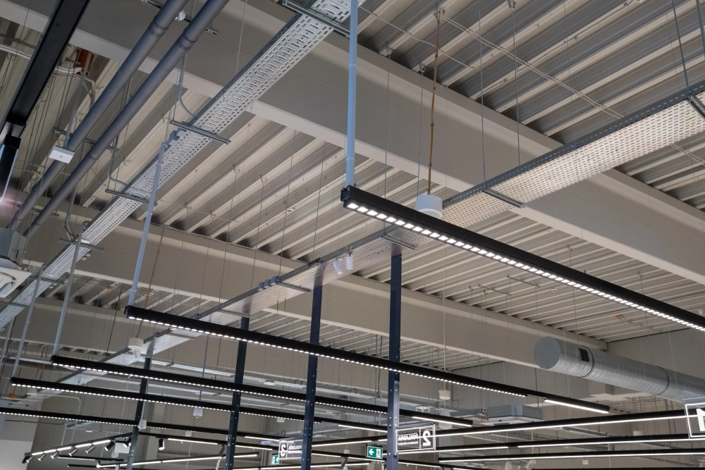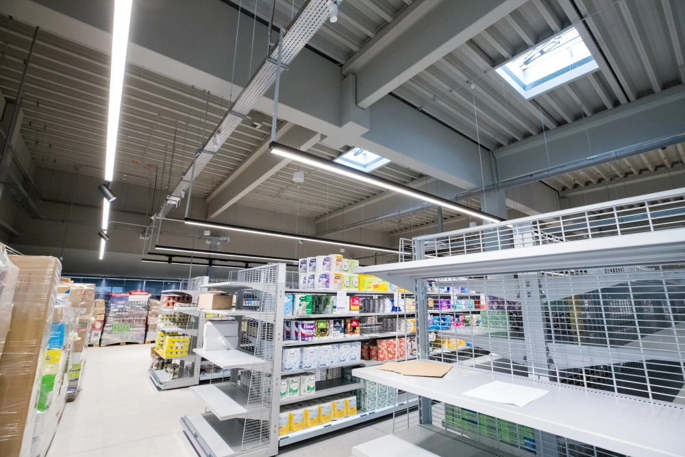 Na rozdiel od novostavby išlo v tomto prípade o kompletnú modernizáciu existujúceho supermarketu v rámci polyfunkčného objektu. Realizácia si vyžadovala presnú identifikáciu pôvodných trás, demontáž existujúcich rozvodov a prispôsobenie nových inštalácií skutočnému stavu stavby.