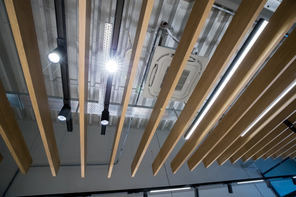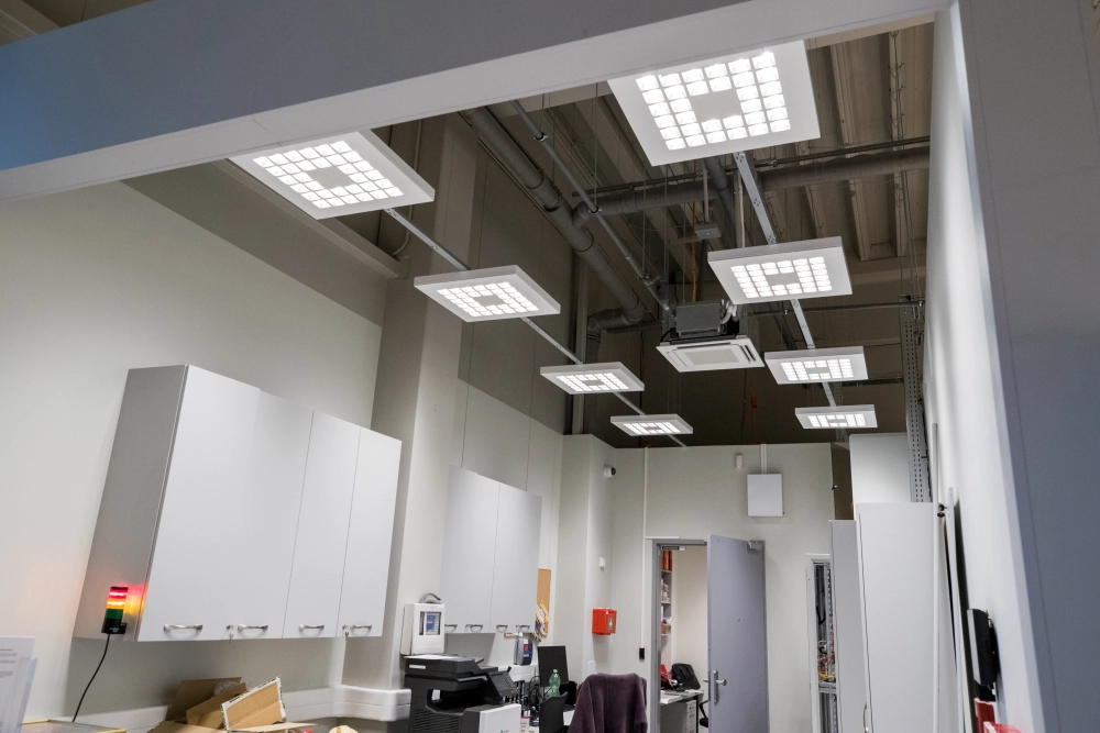 Celý systém osvetlenia je riadený centrálne cez zbernicu DALI, čo umožňuje efektívne ovládanie, jednoduchšiu správu prevádzky a optimalizáciu spotreby energie.